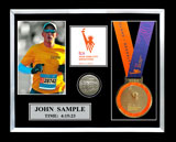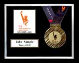 Matted black wooden shadow box: Includes an additional finisher's medal, event logo plate, engraved plate with name and chip time. (Also available in nickel finish)